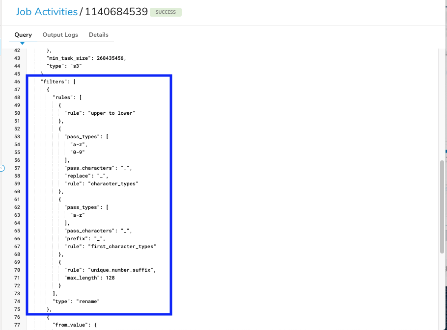 In the case of jobs imported from Sources, if there are column names that contain uppercase letters, etc., the user does not have to specify them, but the rename filter is applied during the import process.