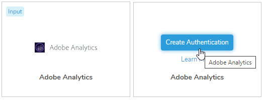 - Hover over the Adobe Analytics connector and select Create Authentication.