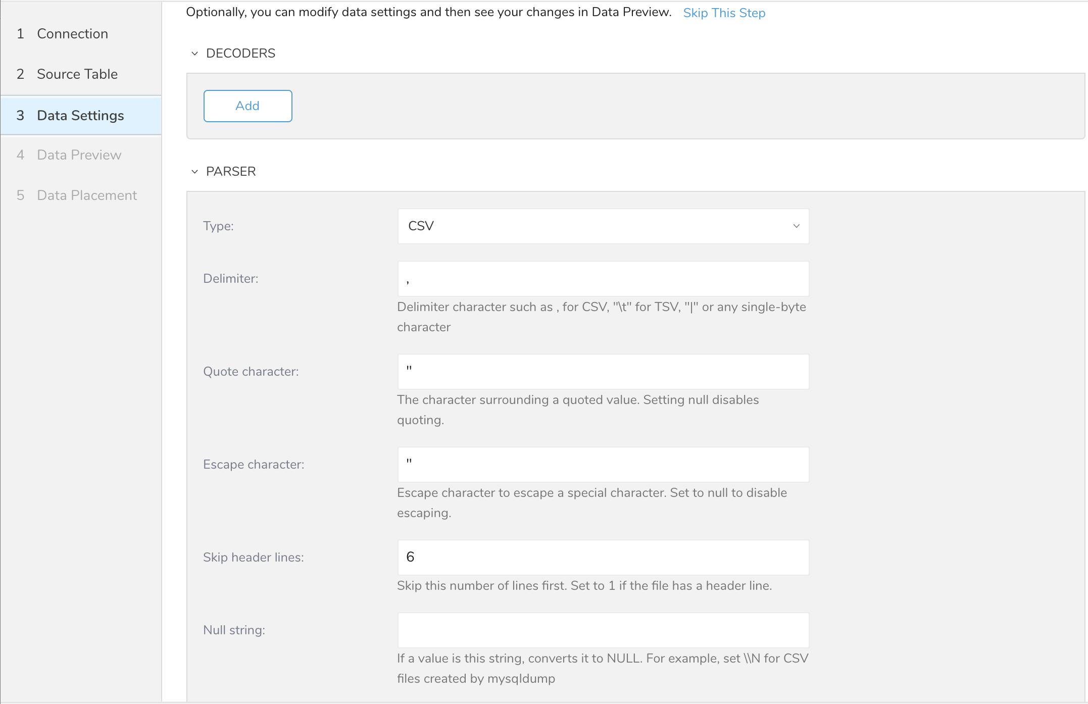| Incremental | Enables incremental loading (boolean, optional. default: true. If incremental loading is enabled, the config diff for the next execution will include last_path parameter so that next execution skips files before the path. Otherwise, last_path is not included. |