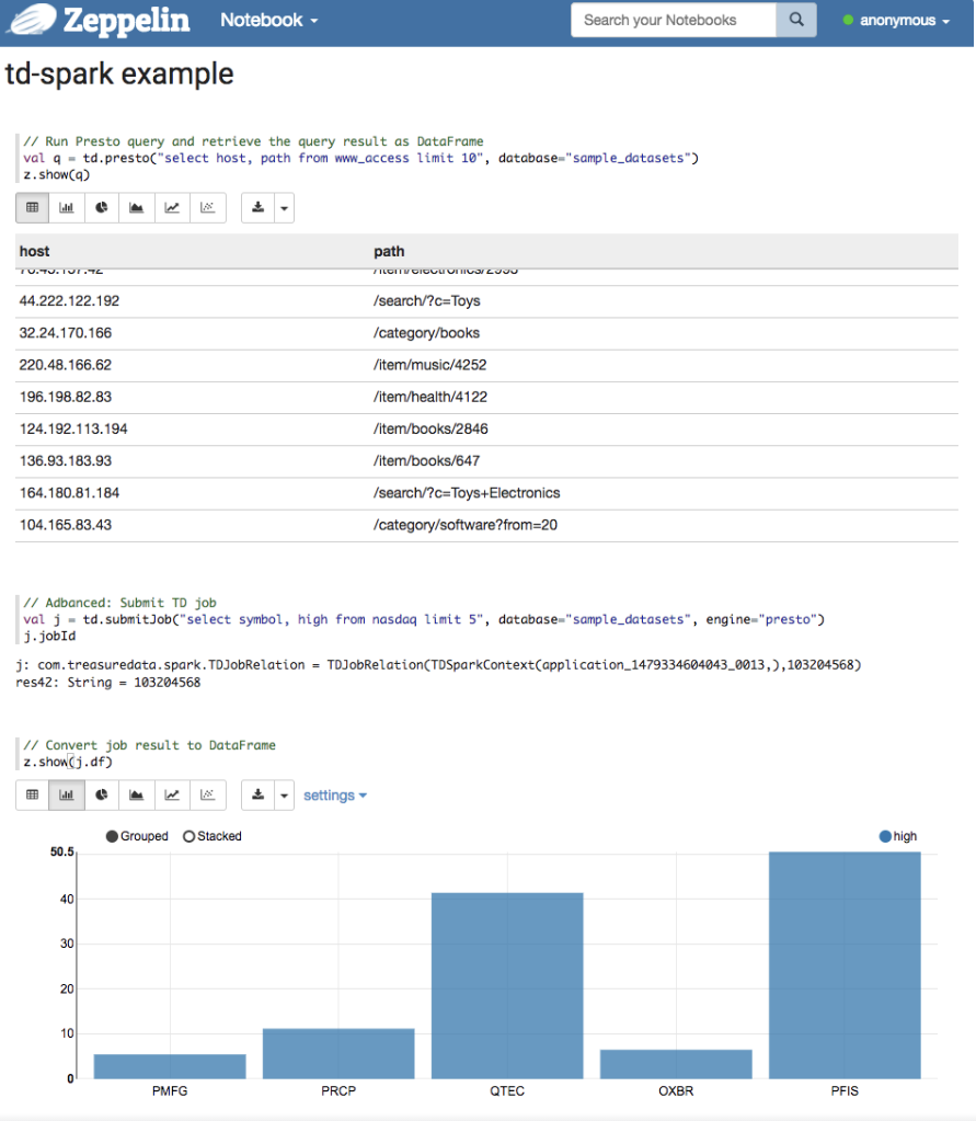 - Access Treasure Data from Spark in Scala and Python (PySpark).