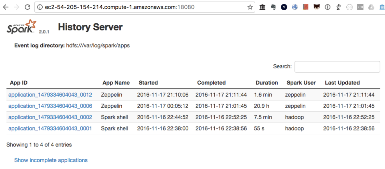 $ ssh -i (your AWS key pair file. .pem) -D8157 hadoop@ec2-xxx-xxx-xxx-xxx.compute-1.amazonaws.com