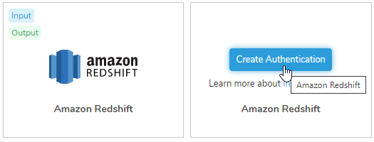 Hover over the Amazon Redshift connector and select Create Authentication.