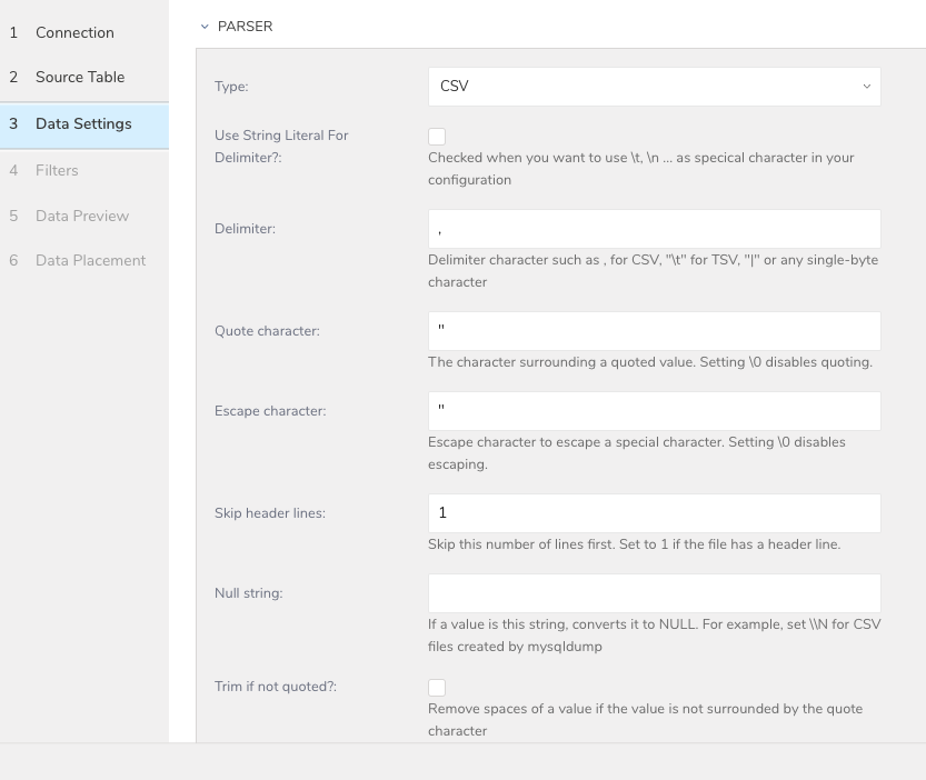 If you are importing a very large file, you can take advantage of the parallel import support provided by this integration. To do this, break up your large files into smaller files and then upload the smaller files simultaneously in batches. However, bear in mind that attempting to import lots of very small files will have a negative effect on performance. Consequently, Treasure Data recommends that you do not perform parallel input with file sizes smaller than 50MB. The default maximum number of parallel import threads that can be used is 16.