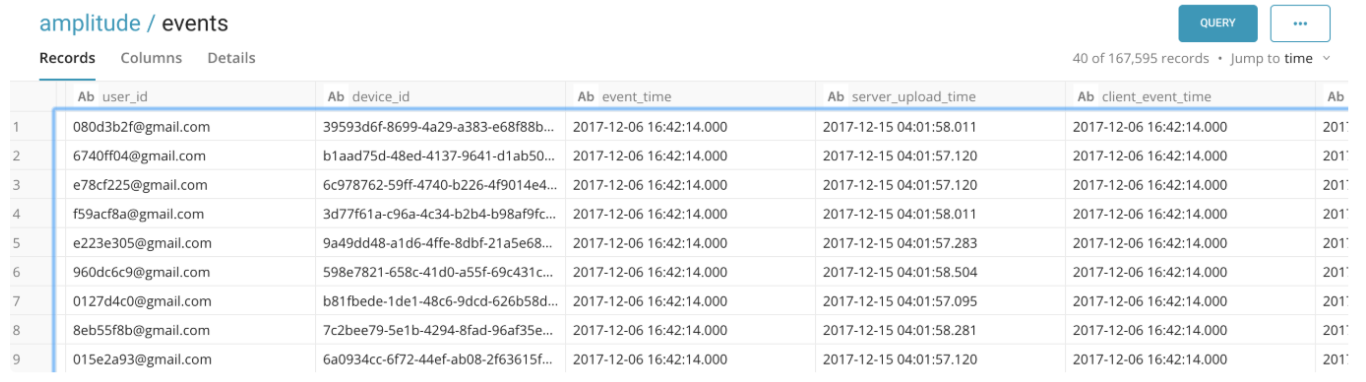 An example of a TD database table that can be used to create records for Amplitude is as follows: