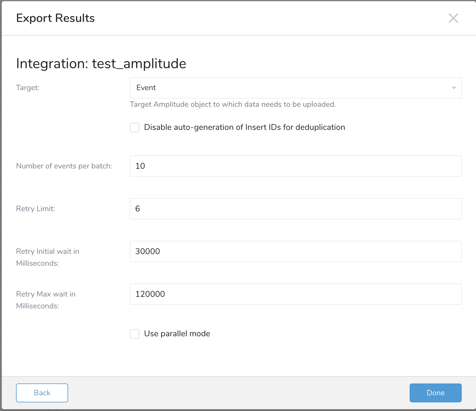 --result '{"type":"amplitude","api_key":"api_key","target":"event","region":"US","disable_auto_generation_insert_ids":"false","events_per_batch":10}' \