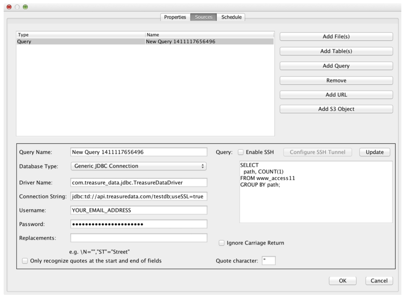 - Username: YOUR_TREASURE_DATA_EMAIL_ADDRESS