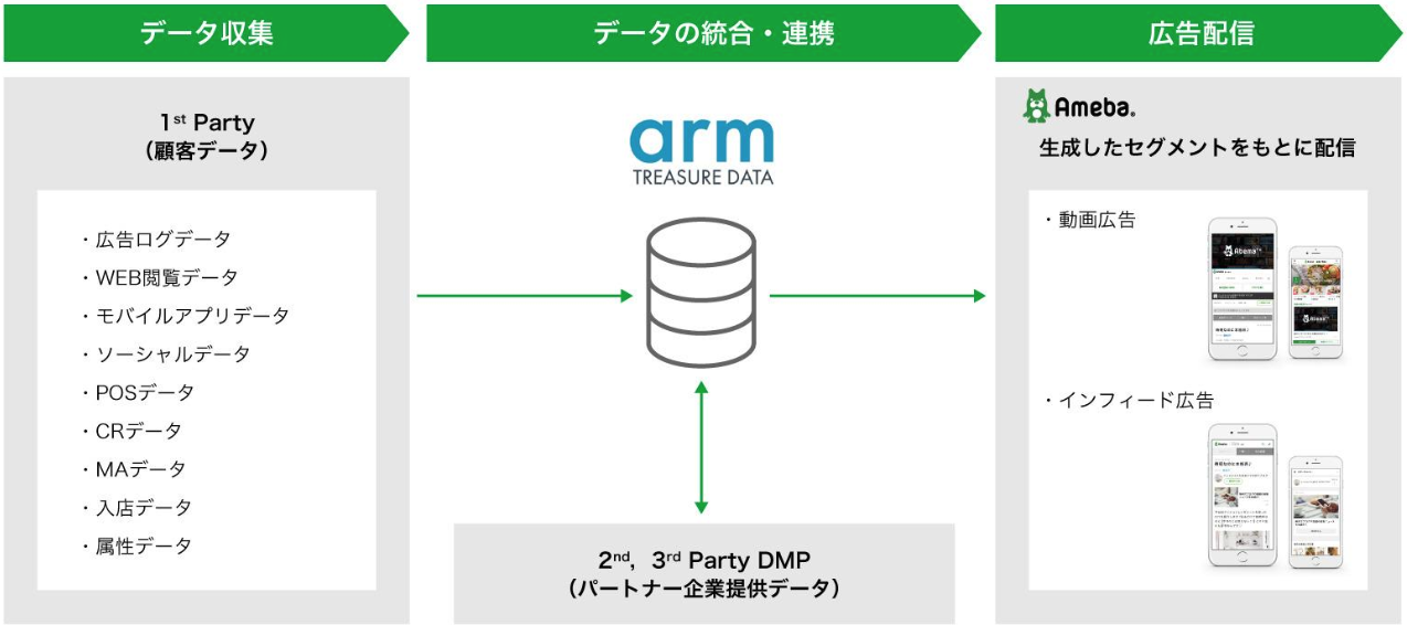 Treasure Data can send user list data with td_global_id to CyberAgent Ameba. You can make a user list in Treasure Data that targets a segment and then send the list to Ameba to use in your advertisement campaigns. Refer to Ameba Ad.