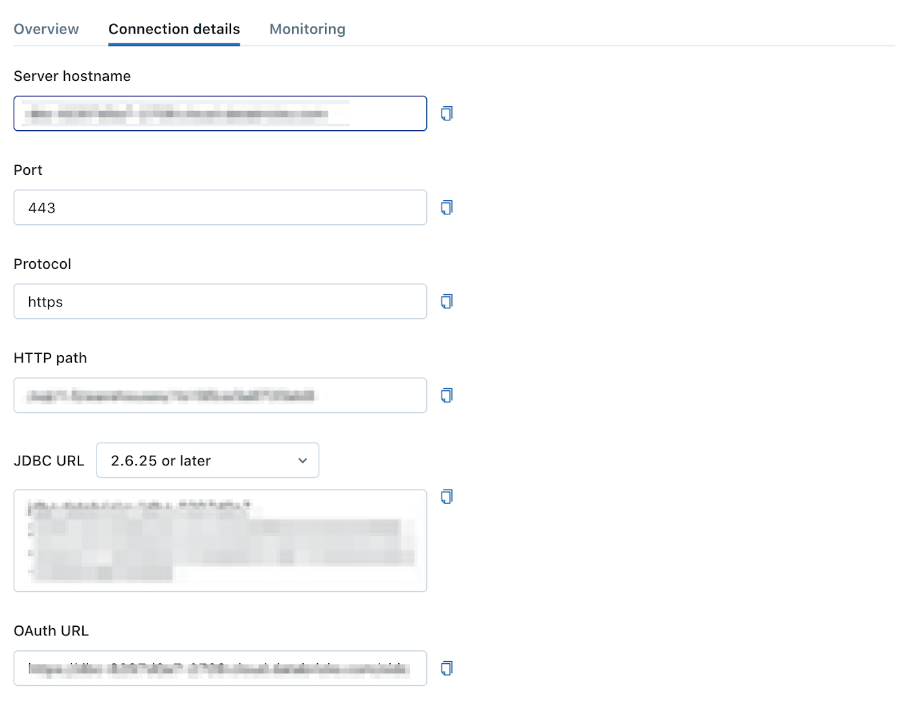- Note the Server hostname and HTTP path for the SQL Warehouse.