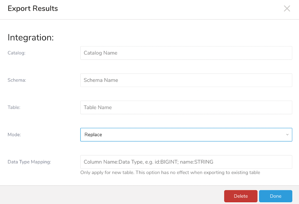 - truncate_insert: The target table will be erased, then TD results will be appended from the beginning of the target table.