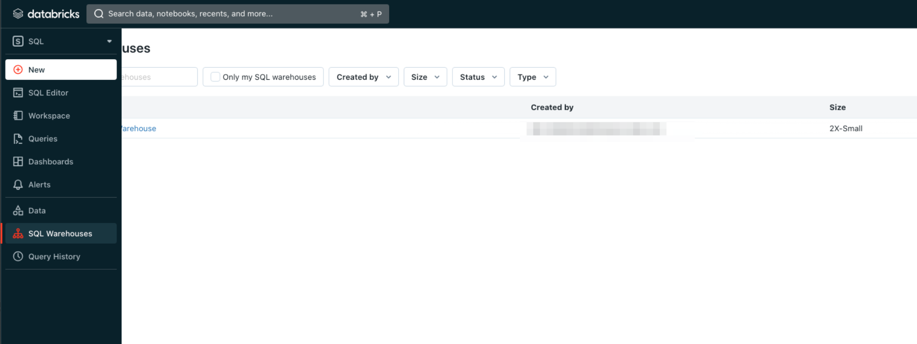 - Select an instance of an SQL Warehouse.
