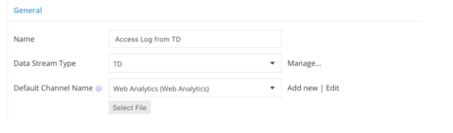 Then, specify your data stream Name, Data Stream Type, and Default Channel Name.