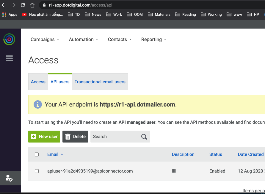 Navigate to https://r1-app.dotdigital.com/access/api and select the API users tab**.**