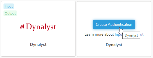 You must create and configure the data connection to be used with Dynalyst, prior to running your imports or query exports. As part of the data connection, you provide authentication to access the integration.