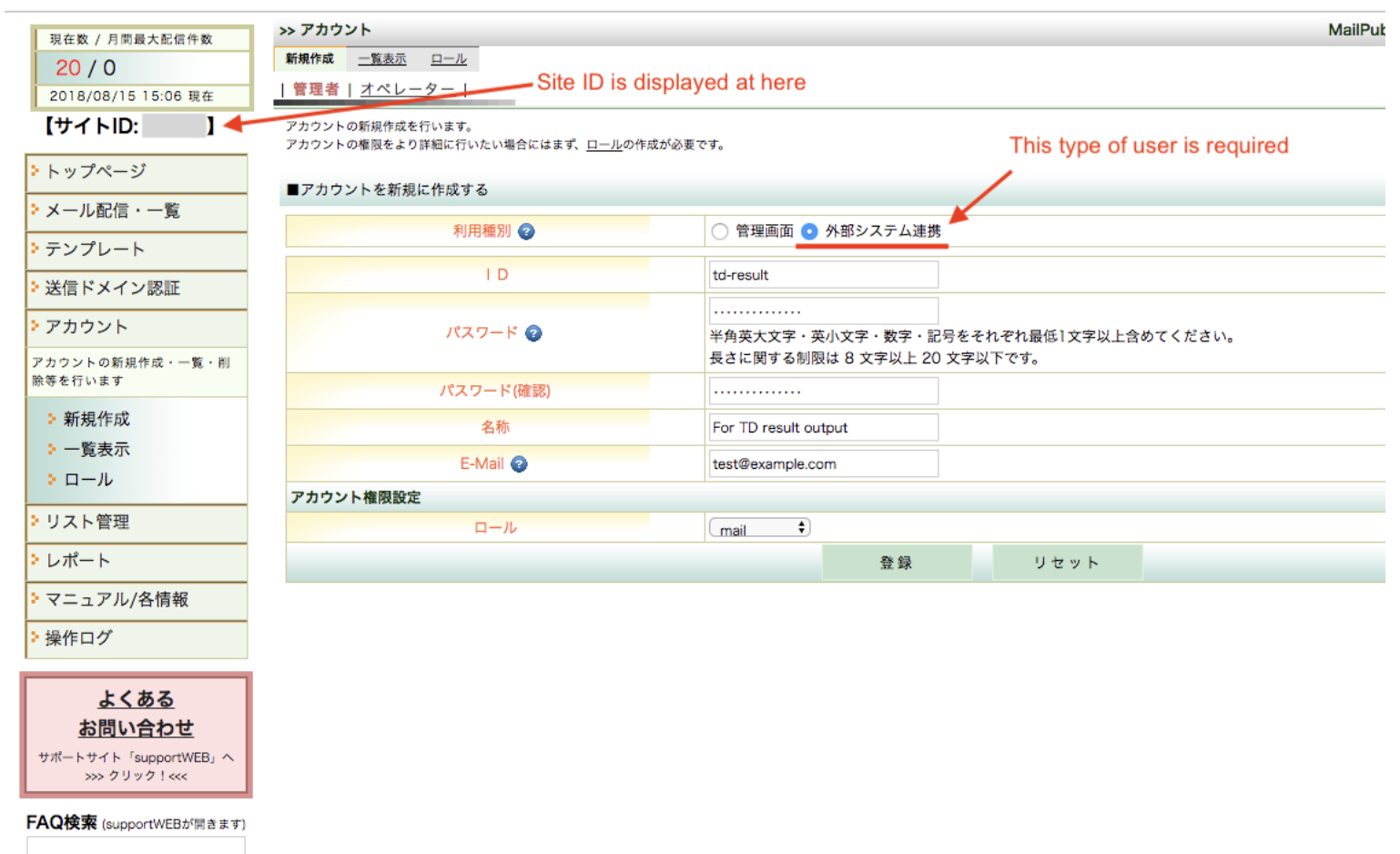 Refer to the "MailPublisher Smart manual to cooperate with the external system (ja: 外部システムとの連携利用マニュアル)" and the "MailPublisher Smart function manual (ja: 機能説明マニュアル)". You can download both from the MailPublisher Smart console.