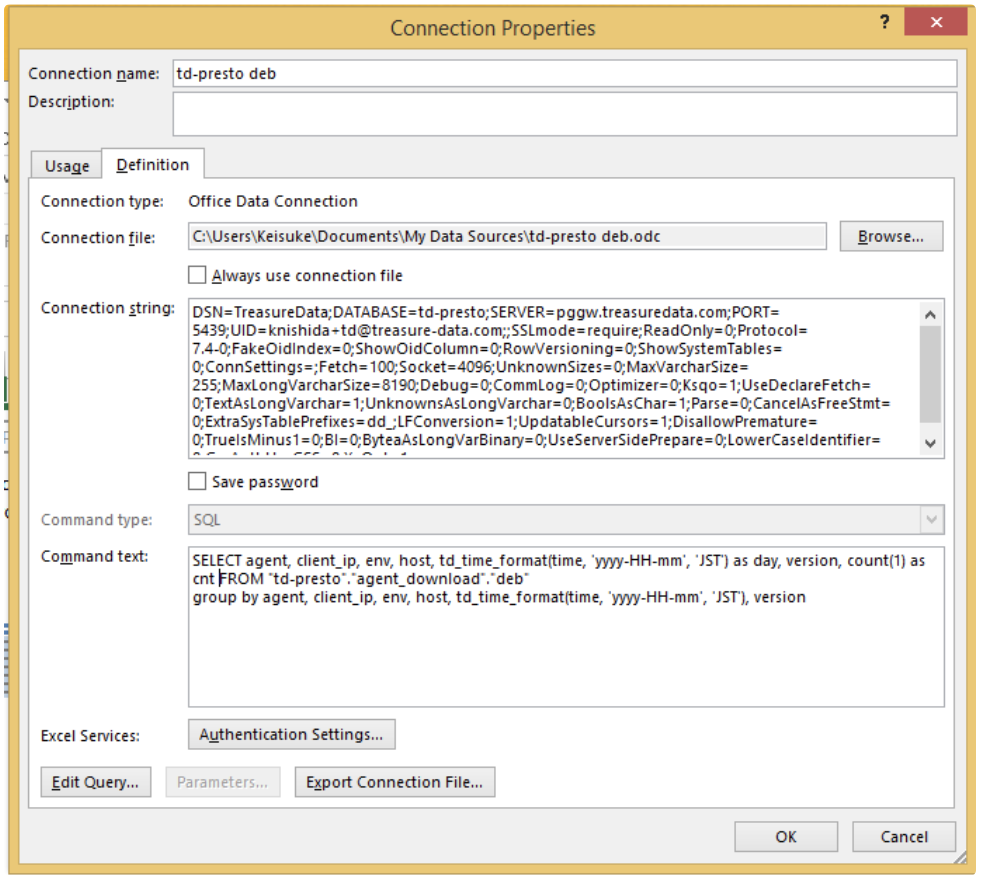 Install Treasure Data ODBC Driver, and register to your machine. We’ll assume that you have DSN (Data Source Name) as Treasure Data in the following sections.