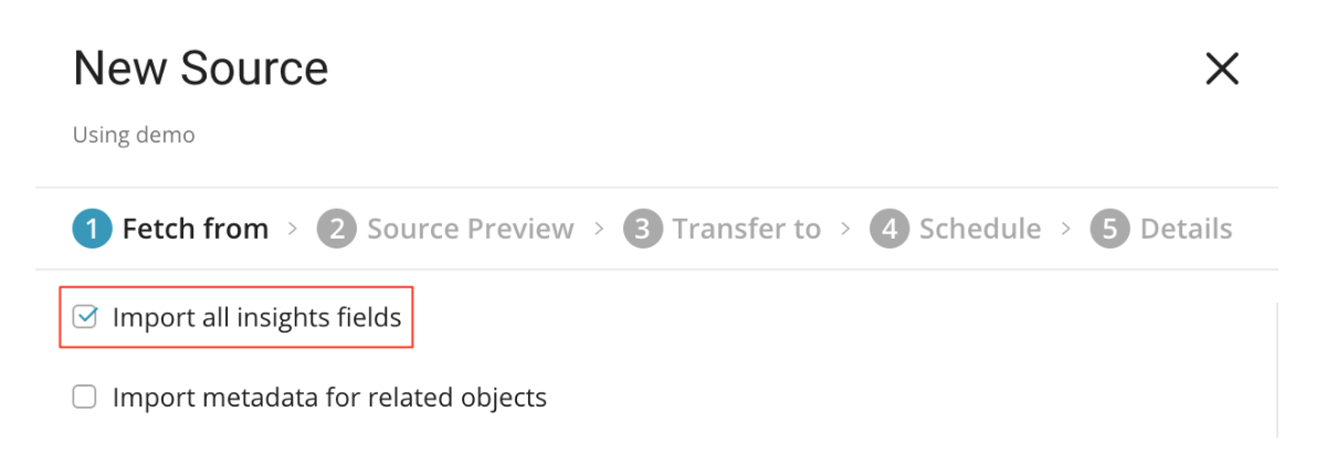 By default, Import all insights fields are checked.