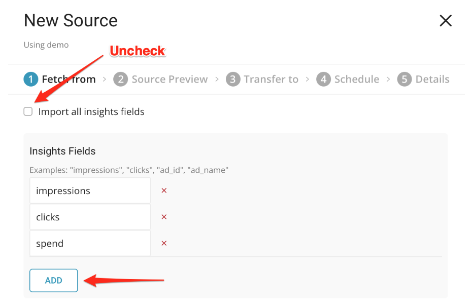You can uncheck Import all insights fields to select specific fields.