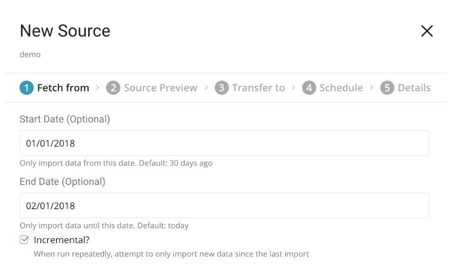 - Start and End Date or Incremental