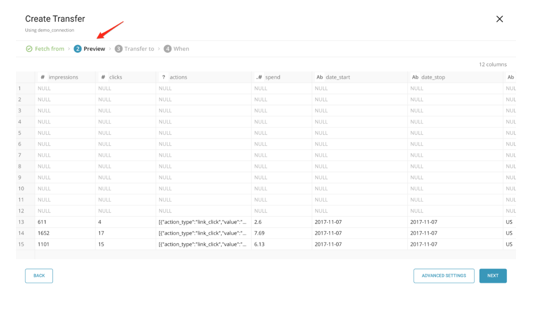 mode: appendYou can see a preview of the data using the preview command.