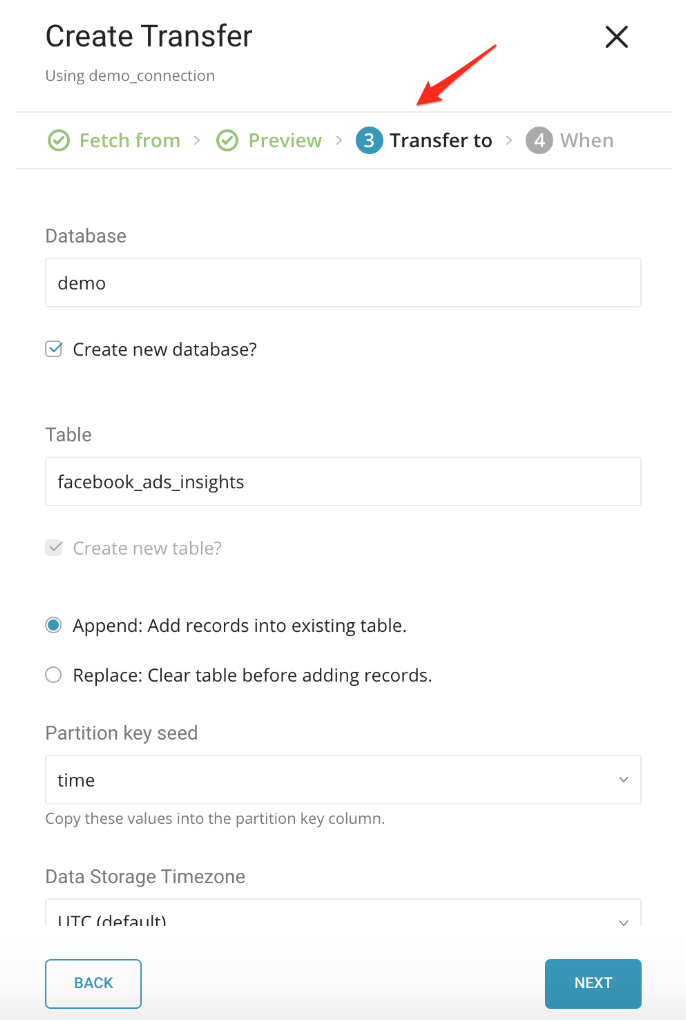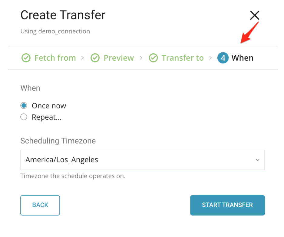 Specify the schedule of the data transfer using the dialog below and select Start Transfer.