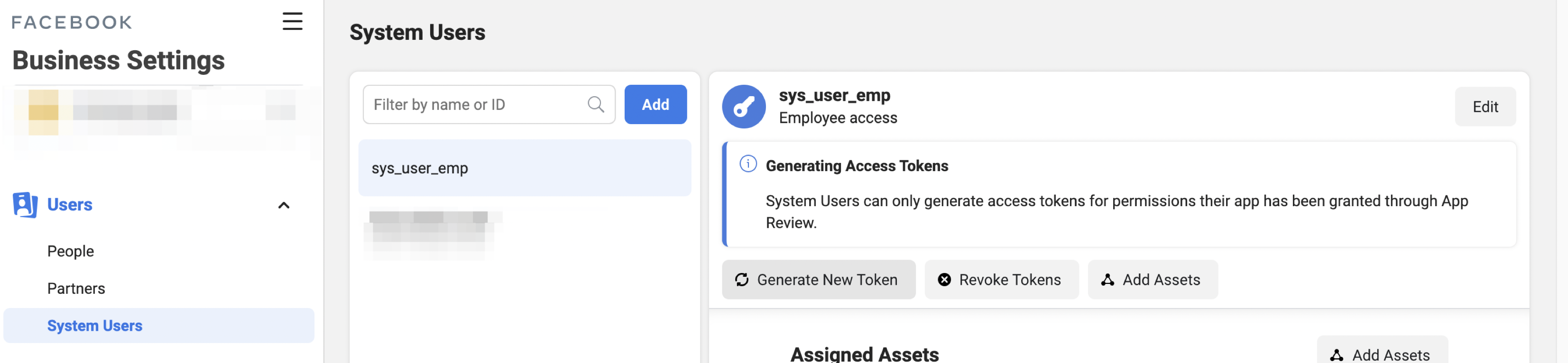 If you are not able to generate an access token to connect to Facebook, see System Users on Business Management APIs.