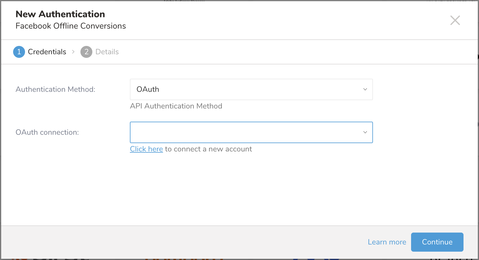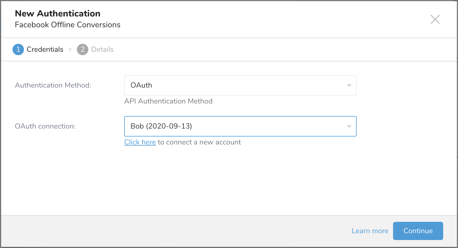 - Repeat the first step (Create a new connection) and choose your new OAuth connection.