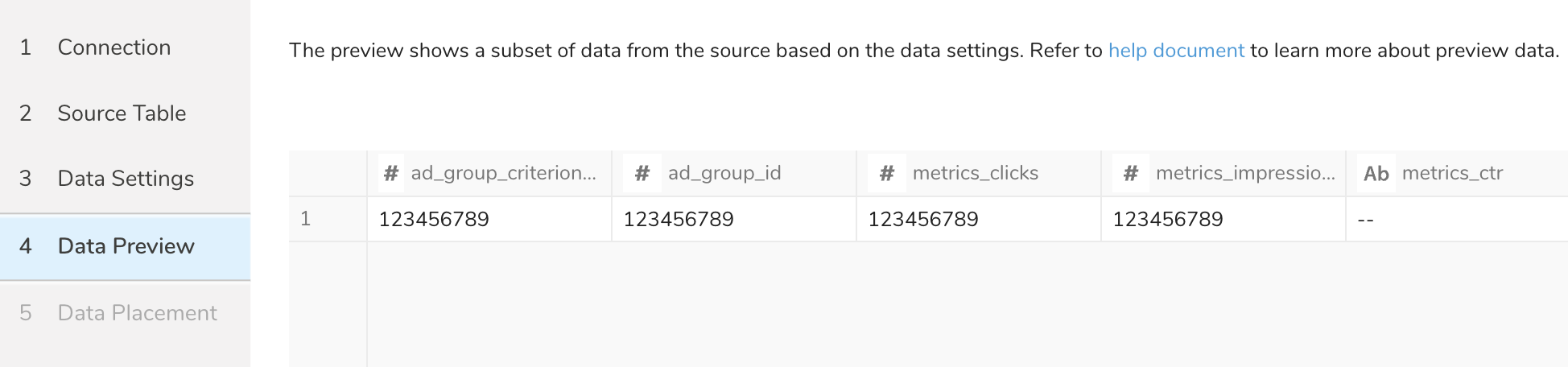 **4 - Data Preview**step, select Generate Preview to see an approximated view of your data before running the import (optional) - Select Next to continue