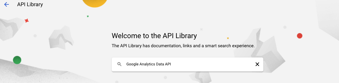 - From the Library page, type to search for the Google Analytics Data API, then press enter.