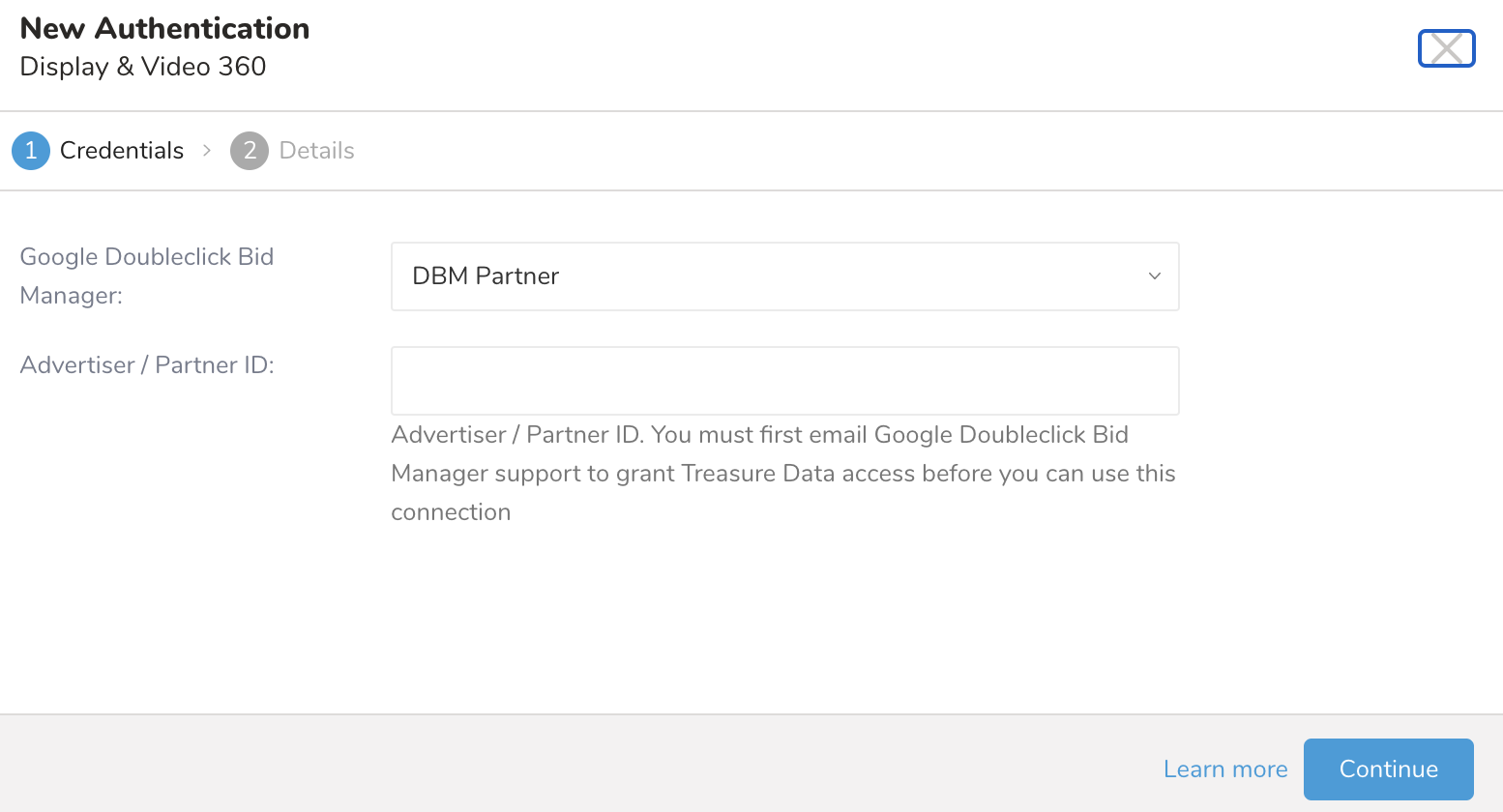 - Authorized Treasure Data Google Display and Video 360 access to your Google Display and Video 360 account