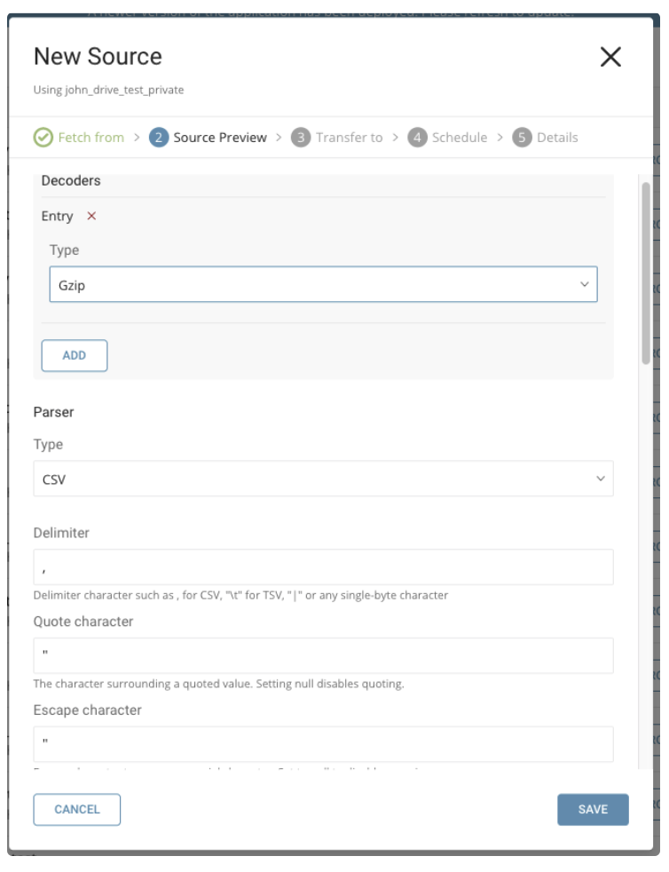 Gzip Bzip2 Zip OpenPGP DecryptionParser: Update the config for the CSV/TSV Parser, if needed.
