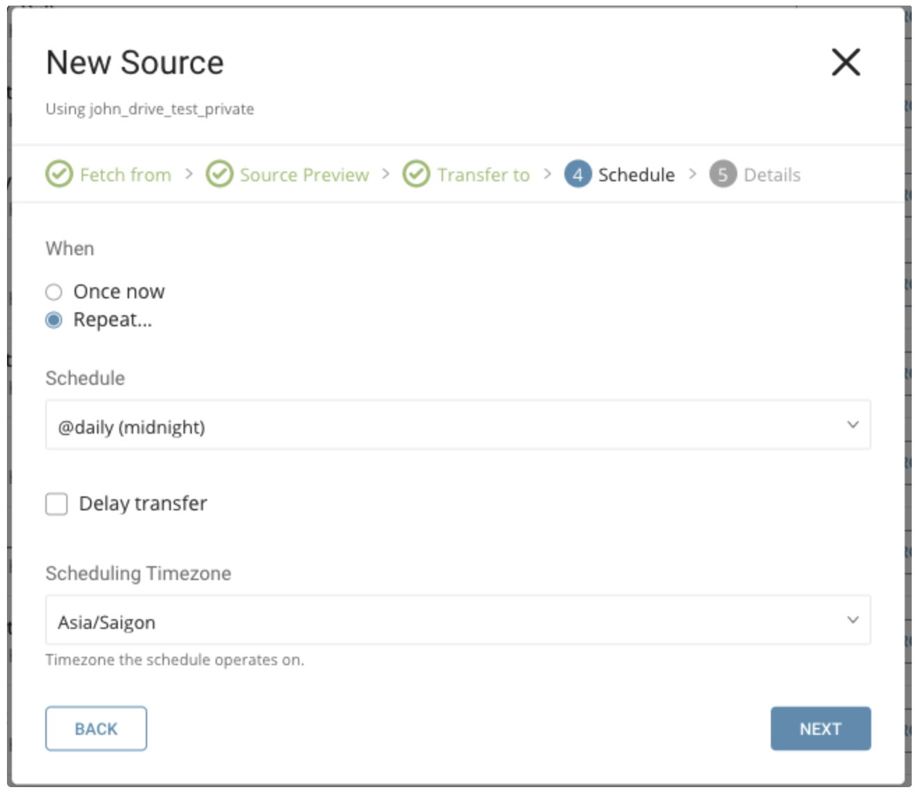 Name your Transfer and select Done to start.