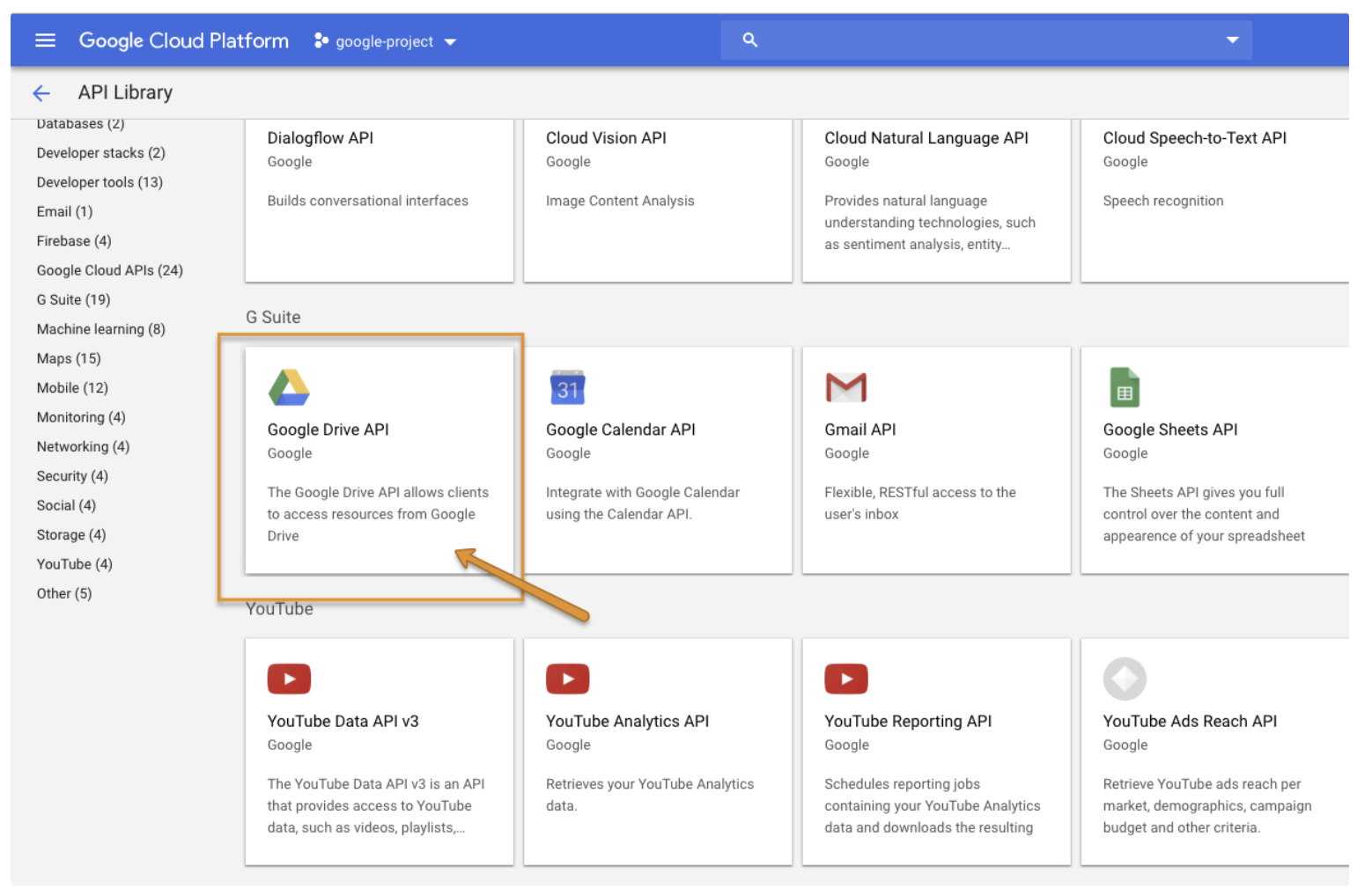 Choose Google Drive API and select Enable.