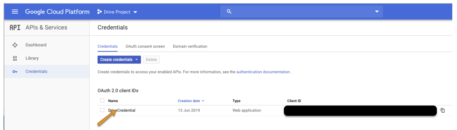 Choose your credential to get your client_id and client_secret.