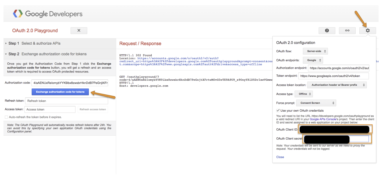 Go to https://developers.google.com/oauthplayground to get a refresh_token.