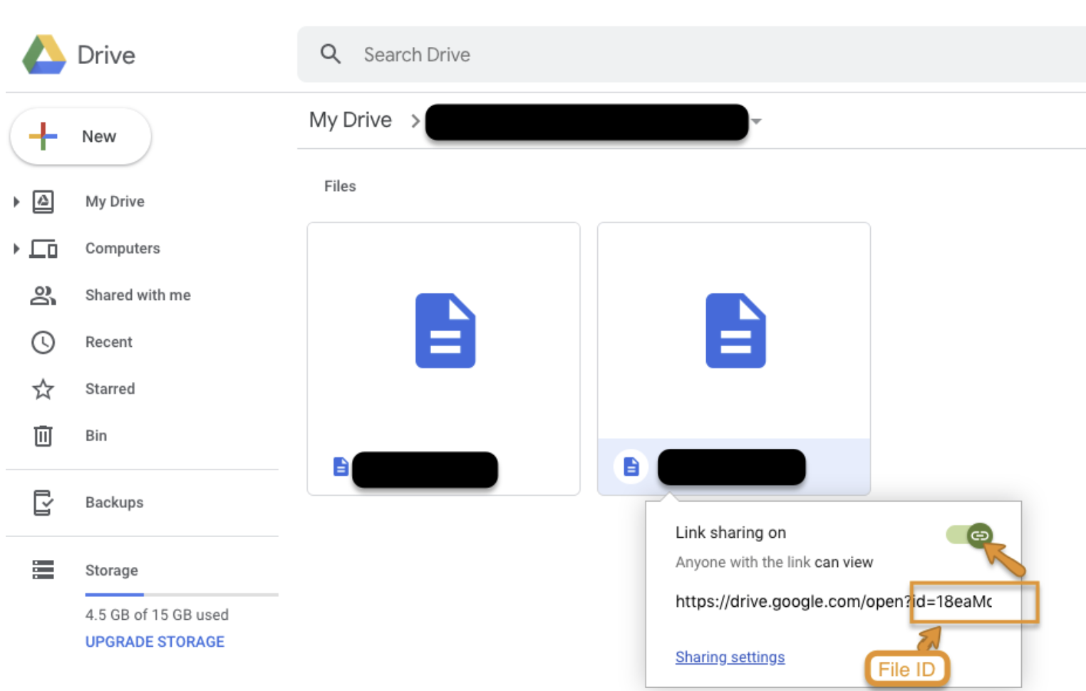 Turn on Link sharingandcopy the File ID from the link.