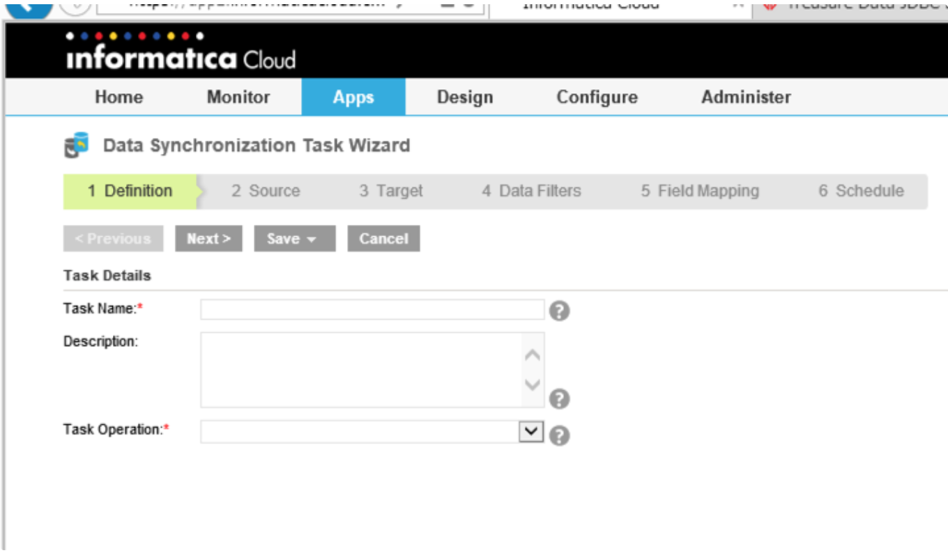 Establish a connection so that Informatica Cloud can extract data from Treasure Data. You are setting up Treasure Data as a ‘Source’ through our JDBC driver.