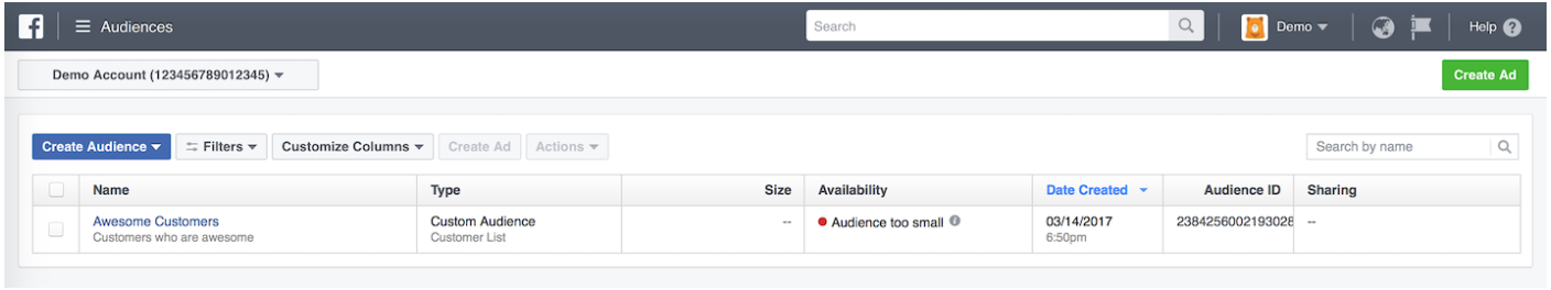 | Custom Audience Description | optional | Description of Custom Audience. |