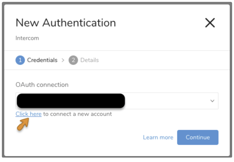 After you grant access to Treasure Data you are redirected back to TD Console. Choose the Intercom connector again, then choose the OAuth Authenticate method. You will see an OAuth connection with your account name in the dropdown list. Choose the account you want to use and then proceed to create the connection.
