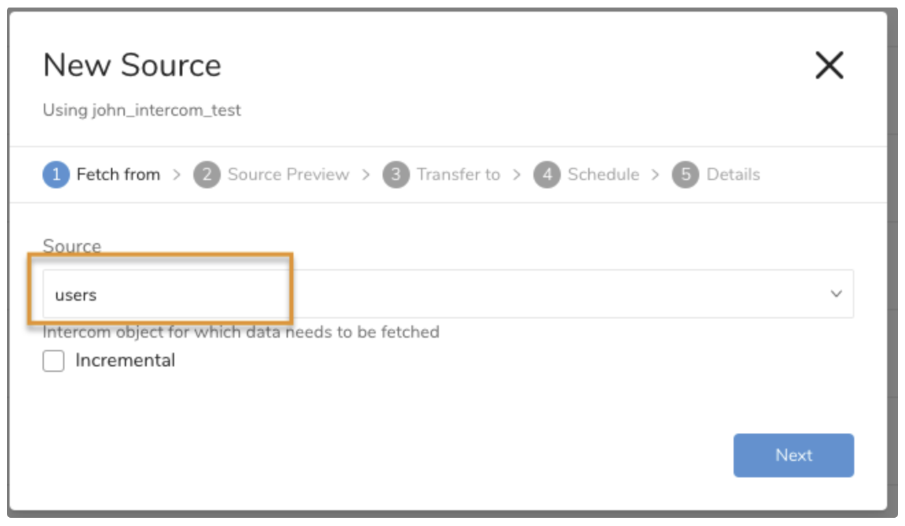 - Incremental: Use when importing data based on a schedule. Use to import only the newest user or conversation created since the last run.