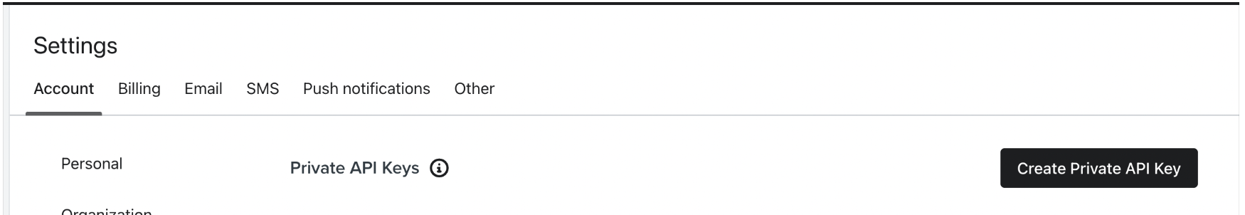 - Select the Account tab, and then select Create Private API Key.
