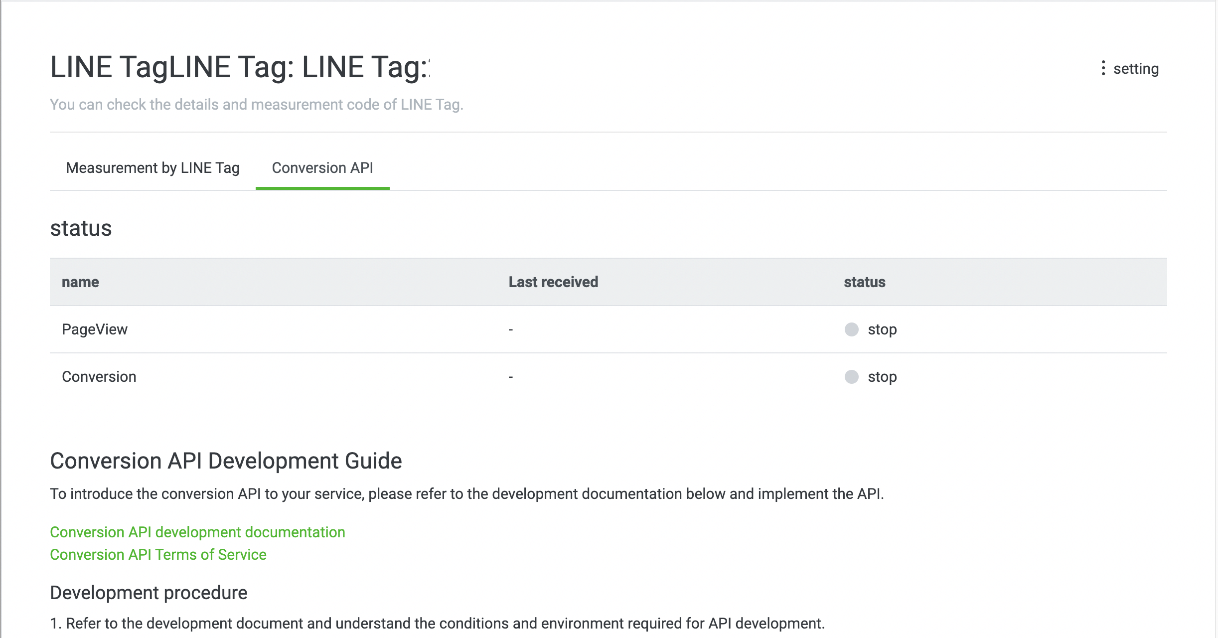 | line_tag_id | Specify the LINE Tag ID for conversion measurement with Conversion API. | Yes | ||||