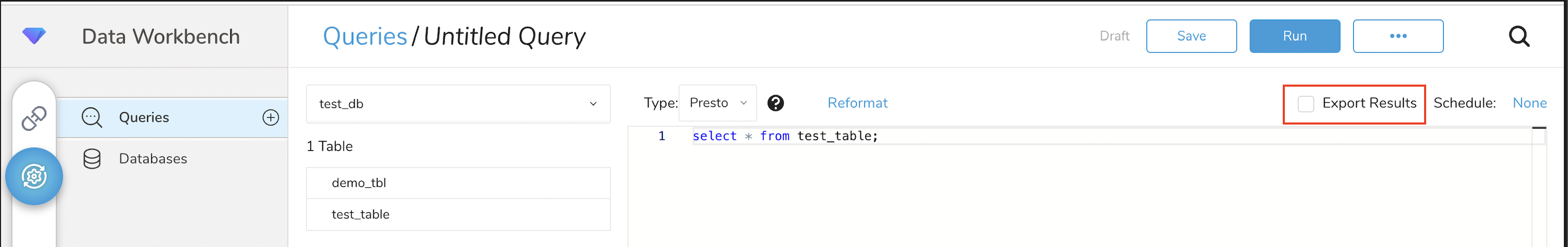 Save the query with a name and run, or just run the query. Upon successful completion of the query, the query result is automatically exported to the specified destination.