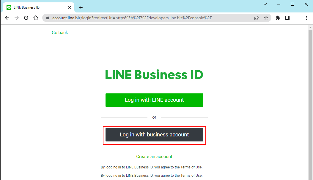 - Select Log in with LINE account.
