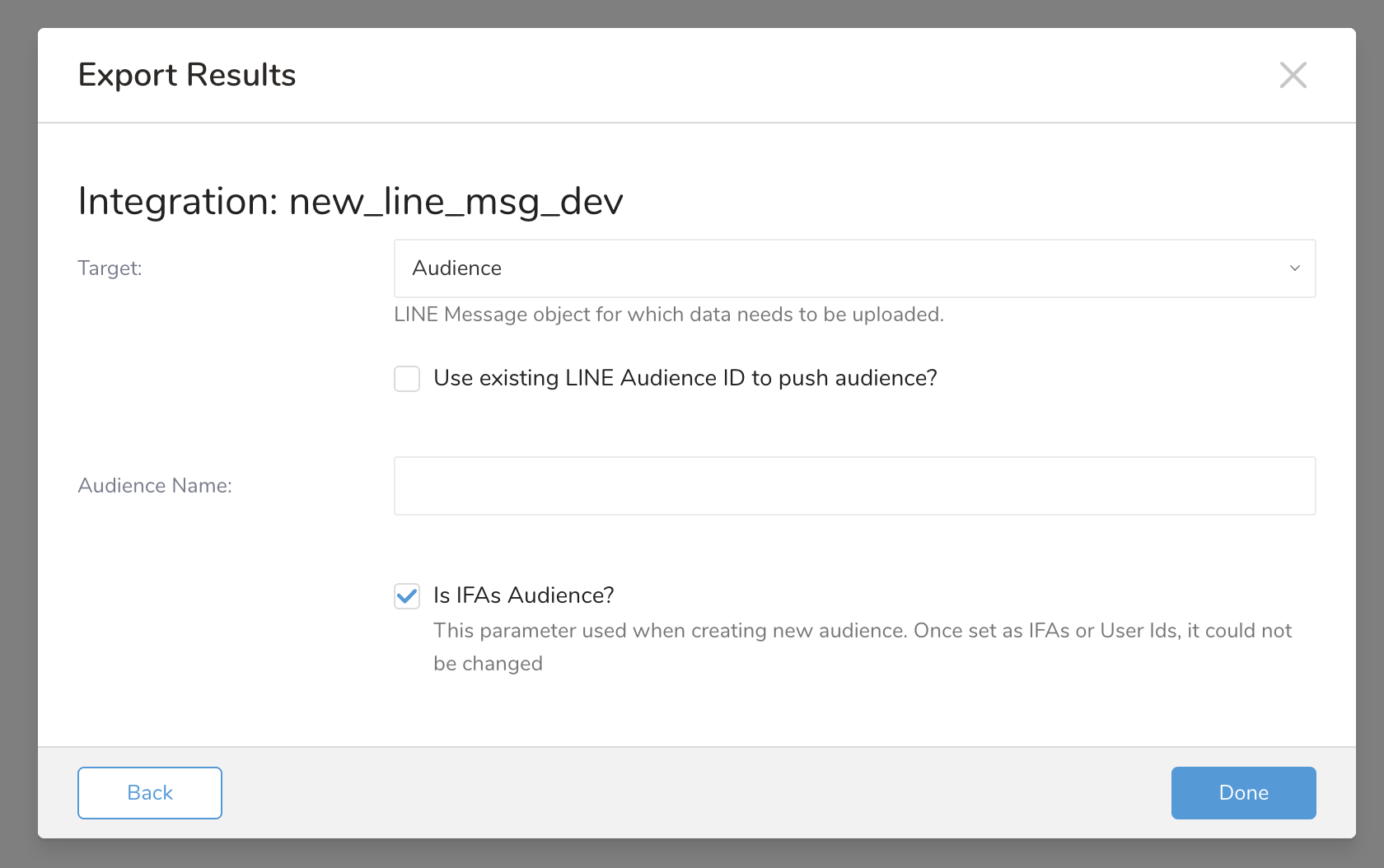 | Is IFAs Audience? | Select this checkbox if you are uploading IFA audiences. Otherwise, LINE User ID is used. |