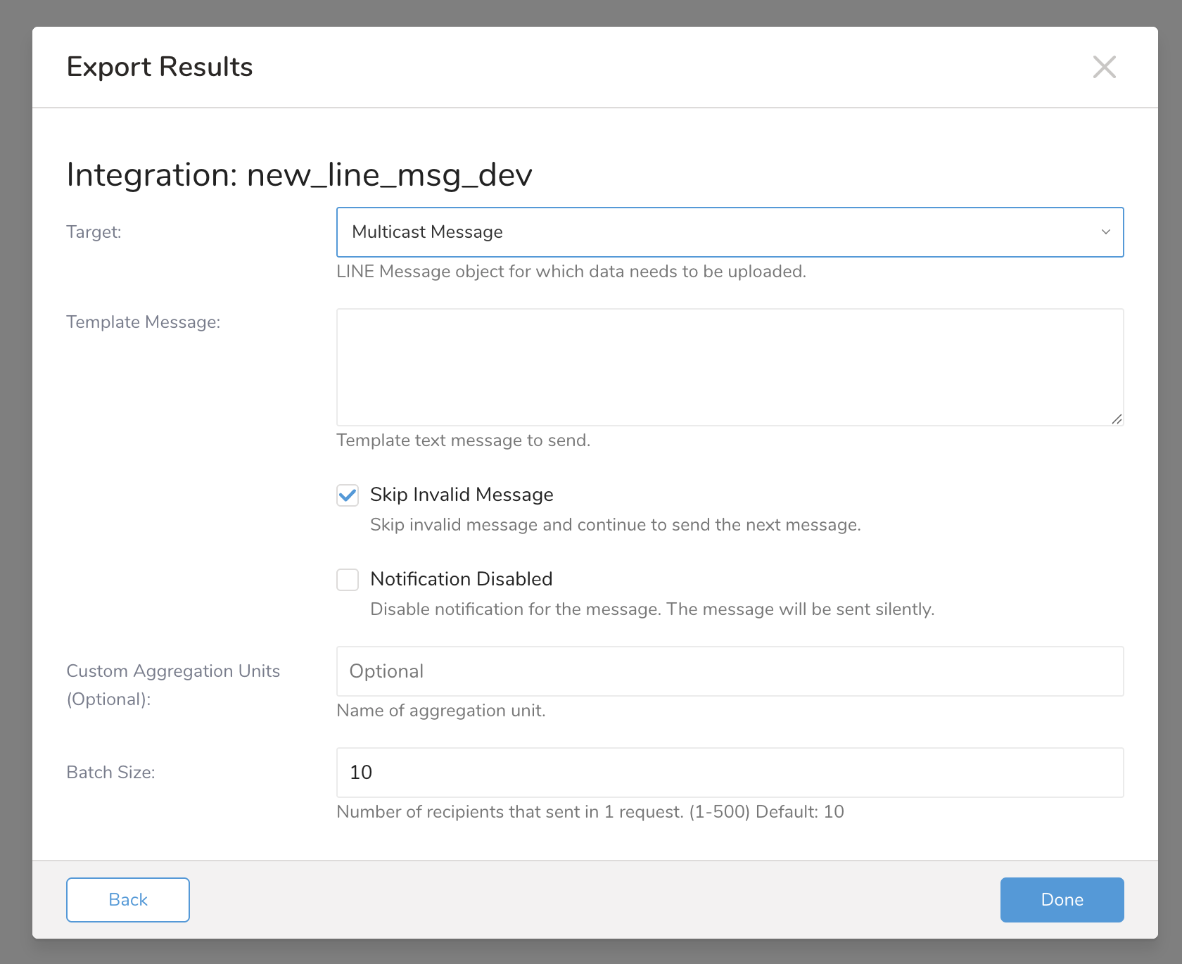 | Skip Invalid Message | Enable to skip invalid message and just send the valid message. If unable, if there is any invalid message, it will raise an error message. |