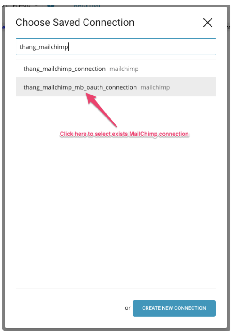 You can use the TD Console to configure your connection. You create a new connection or if you already configured a Mailchimp data connector (an input transfer or an authentication), you can skip to Configure Export Results in Your Data Connection.