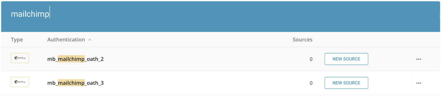 After creating the authenticated connection, you are automatically taken to the Authentications tab. Look for the connection you created and select New Source.