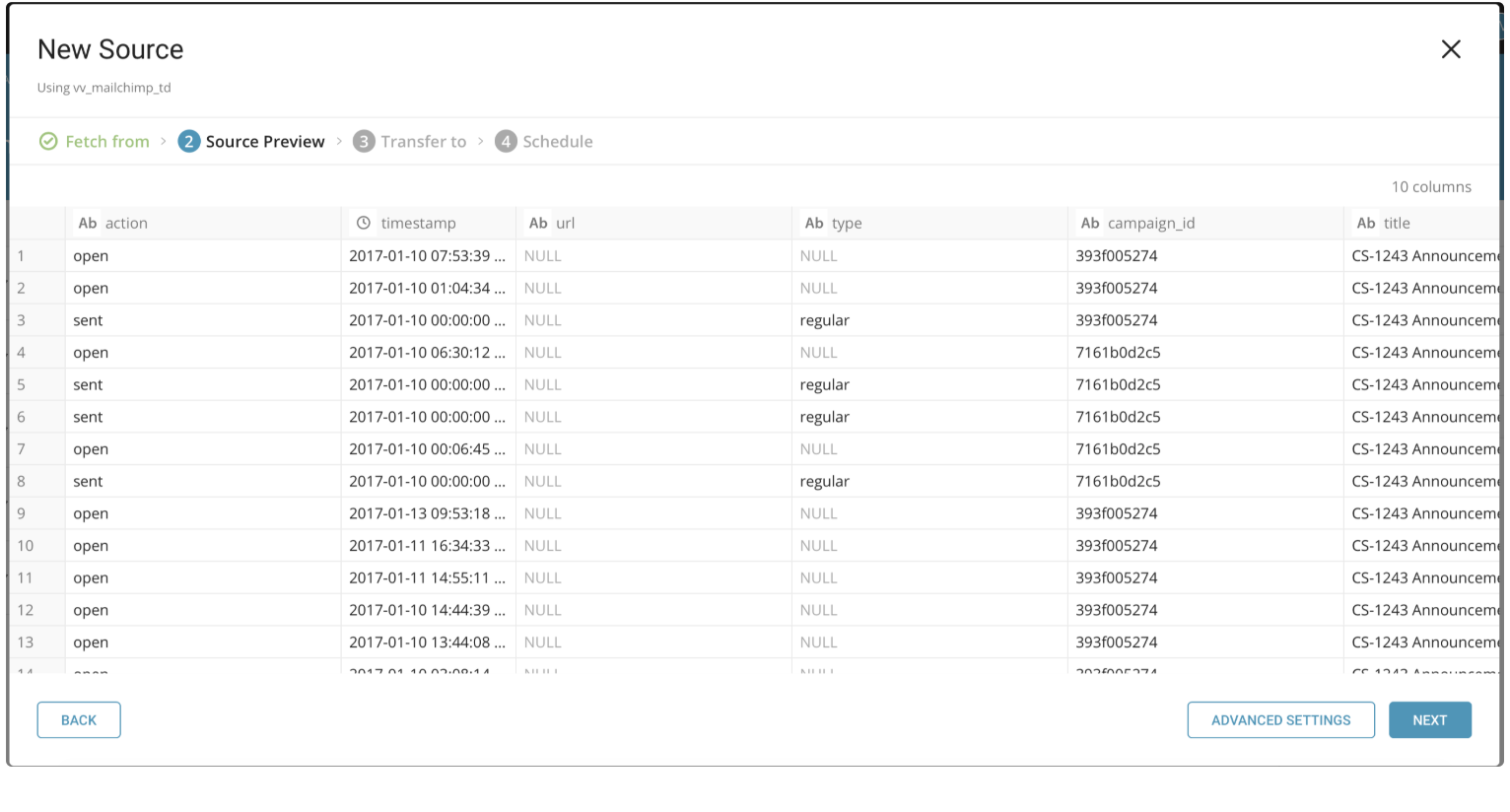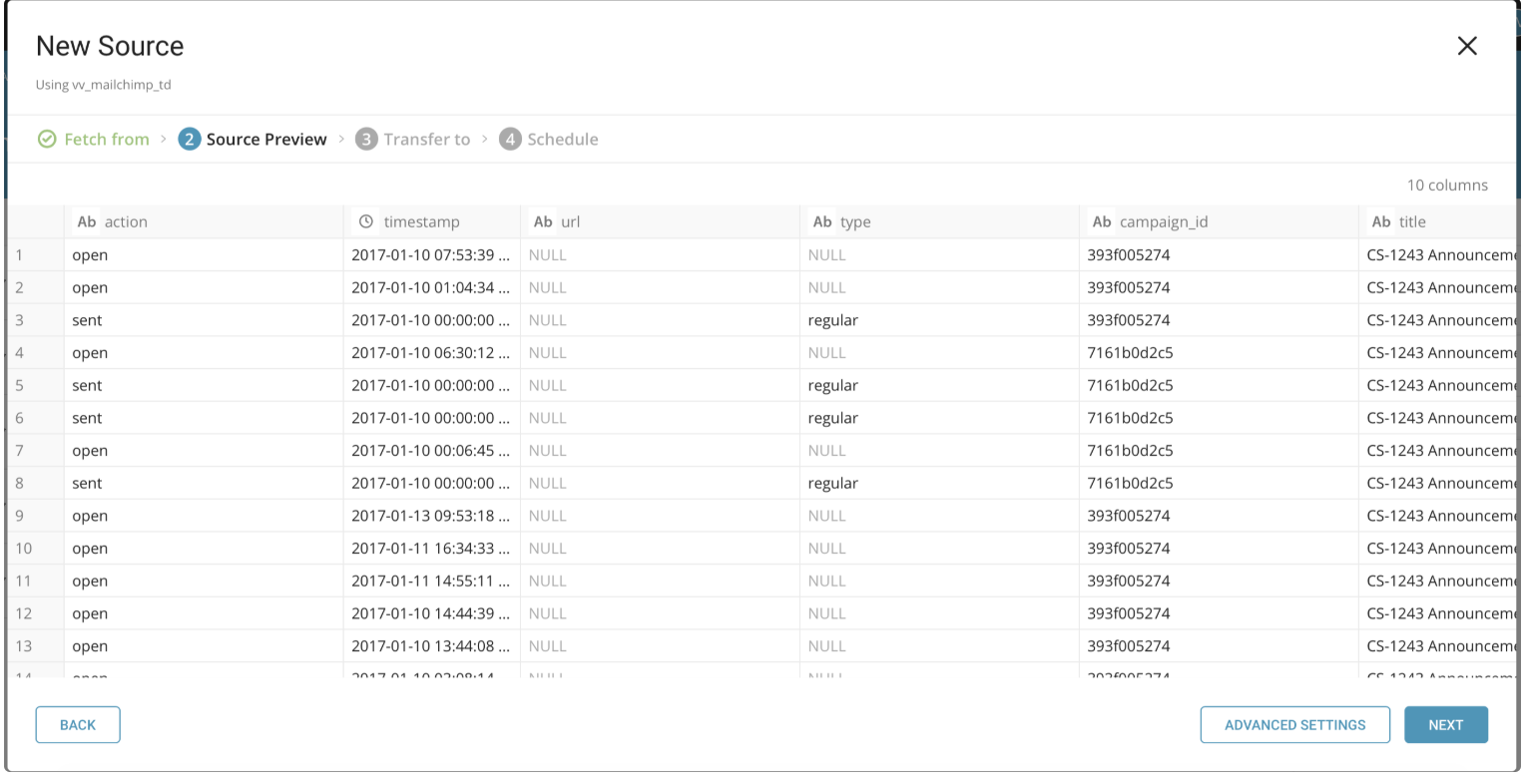 You can use this data connector to import List Members, Member Activity, Campaigns, and Lists data into Treasure Data.
