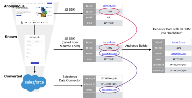 Marketers are often facing the challenges of associating data between CRM, MA (Marketing Automation), and Web anonymous customer tracking data. Marketers need the ability to track the complete customer funnel, and measure the end-to-end marketing campaign ROI.