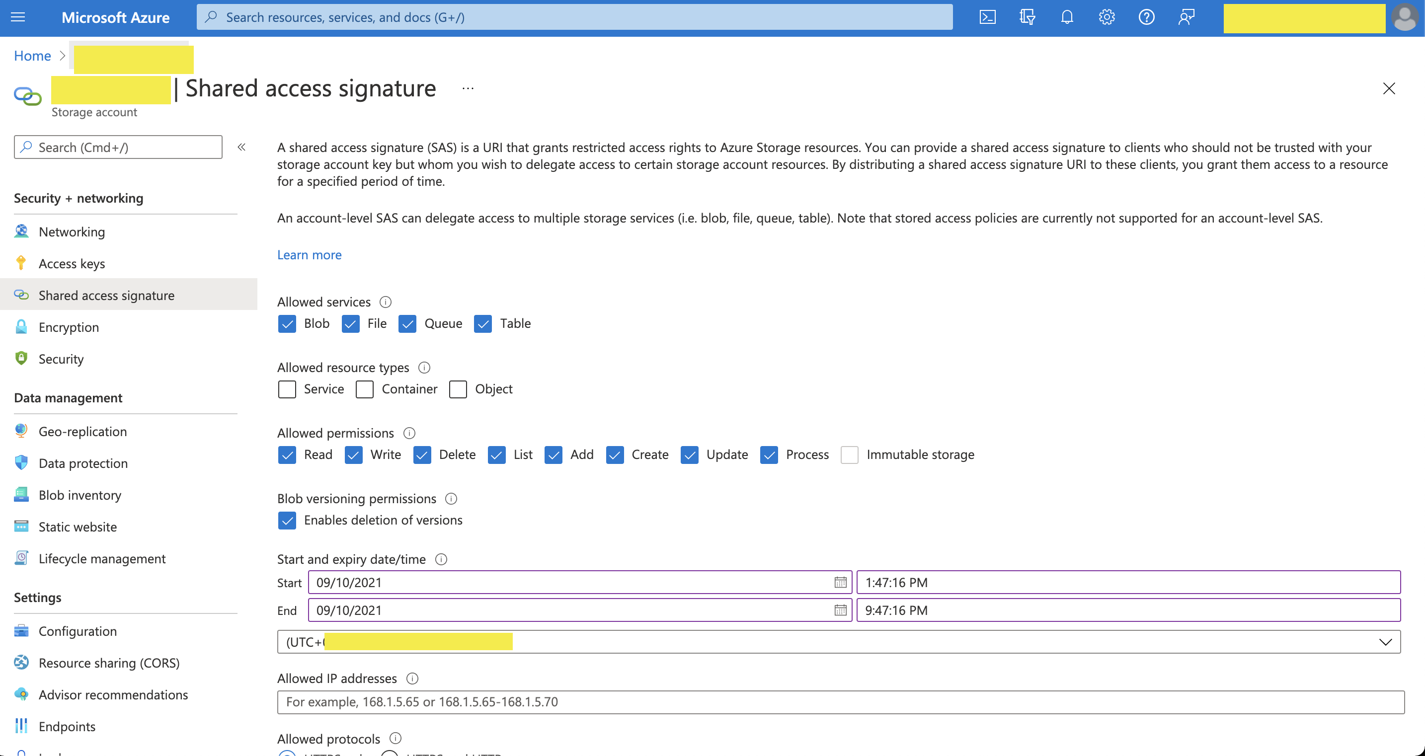 - Select Shared Access Signature from the Authentication Mode dropdown menu.